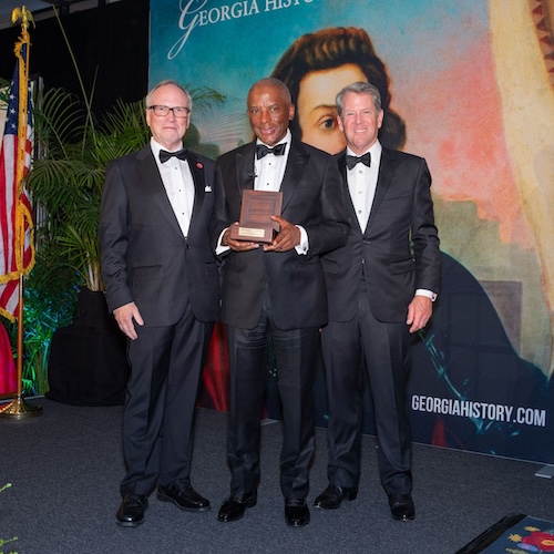 Georgia Historical Society President and CEO Dr. W. Todd Groce, Chris Womack, and Governor Brian Kemp. Photo by John McKinnon.